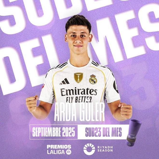 4场2球2助,皇马中场居莱尔当选西甲9月最佳U23球员